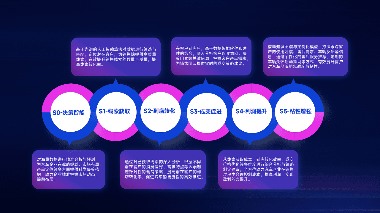 通过拓宽潜在客户来源、、优化线索分配并提高到店转化率,,,以增强销售效率。。。。同时,,利用线索数据不断优化分析模型,,,有效提升转化率,,扩大营销影响力。。。